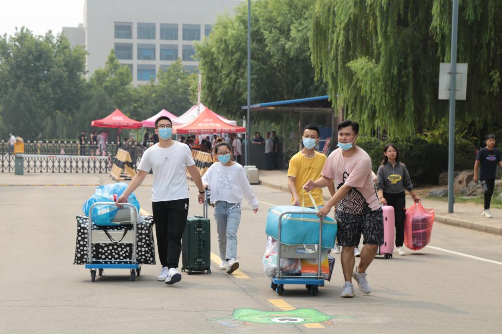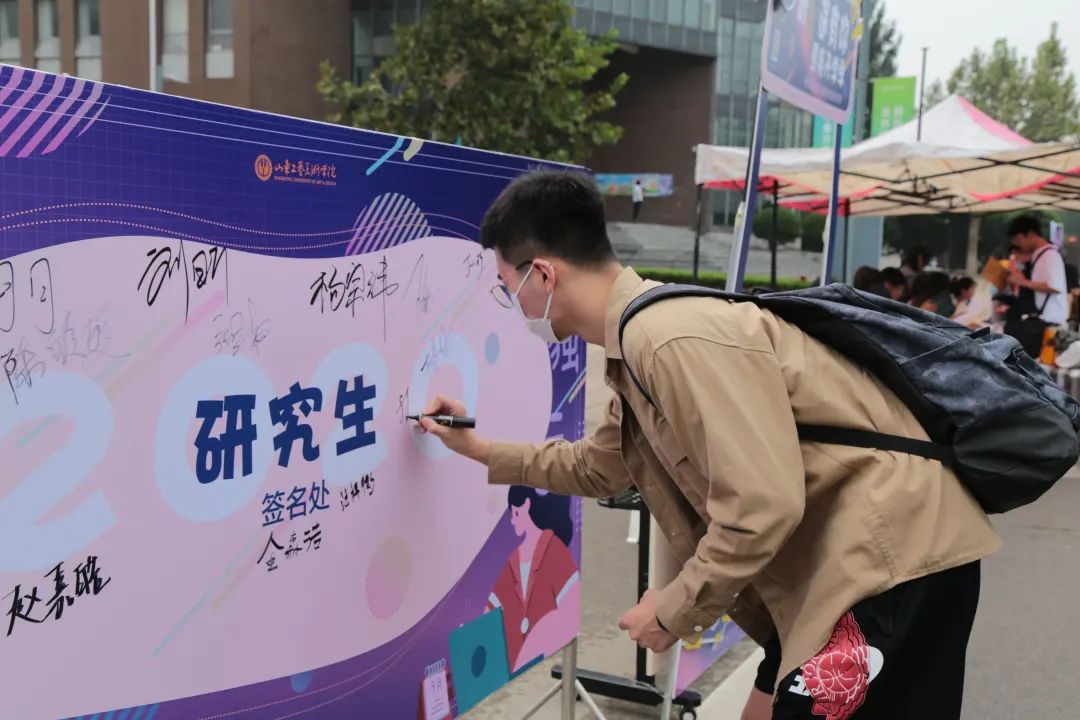 疫情防控不放松,管理服务更细心。为方便学生报到,早在入学前,研究生处便通过“山工艺研究生”微信公众平台向新生推送了新生入学指南,图文并茂地向学生介绍了学校的基本情况和报到流程,为他们“解锁”山工艺研究生新生活。在疫情防控常态化要求下,为保障学生安全,车辆及亲友不能入校,为此,学校组织了一站式报到服务,在设计师广场设置了新生报到处和党员服务站,为新生提供周到的服务。报到处的工作者们贴心地为新生办理报到手续,党员志愿者们不辞辛劳地帮学弟学妹搬运行李,耐心解答他们的疑惑。一个个忙碌的身影,一张张热情的笑脸,一声声耐心的引导,让新生们真切地感受到了研究生大家庭的温暖。此外,研究生会精心制作了明信片、照相板、签名展板等,让研究新生在入门之时就感受到了浓郁的校园文化氛围,确保新生能够尽快适应校园环境并进入学习状态。
