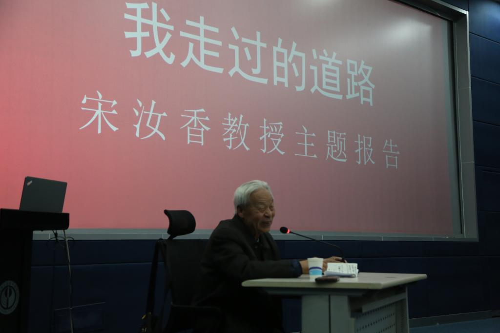 在理论学习结束之后,研究生党员来到学校数字演播厅,听取了老党员宋汝香教授的专题报告。宋汝香教授历经战火时代,经历了开国大典,一路走到现在,见证了祖国的繁荣富强,见证了党从初期到现在的改变,现已八十六岁高龄的宋老先生,这次的到来为教师和学生党员上了一堂生动的党课。