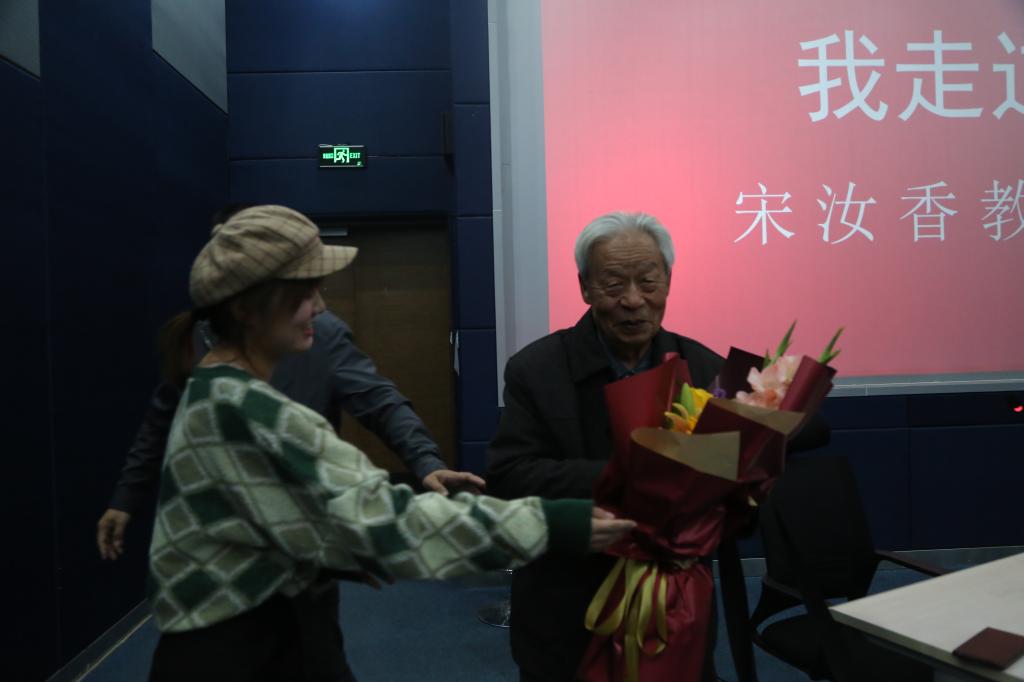 活动的最后,学生党员代表向宋老先生敬献鲜花,教师和学生党员与宋老先生合影。