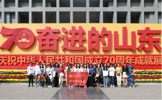 为庆祝中华人民共和国成立70周年,9月26日,研究生处组织我校研究生党员赴山东省博物馆参观“奋进的山东-山东省庆祝中华人民共和国成立70周年成就展”。通过这次参观,同学们更加具体、深刻地了解了建国70年以来山东省的发展历史,被老一辈无产阶级革命家的艰苦奋斗、乐观向上的精神所感动,更加珍惜今天这来之不易的繁荣。