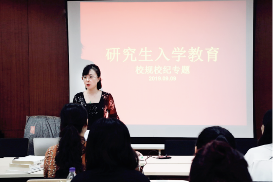 9月9日,王卫卫老师组织2019级新生学习了《研究生管理规定》,就研究生的权利和义务、学籍管理、纪律与考勤、公寓管理规定等重要方面进行了讲解。王老师通过具体的事例,对研究生相关的规章制度进行了详细介绍,为培养研究生的良好学风、提升研究生文明素养奠定了良好的基础。