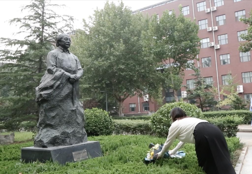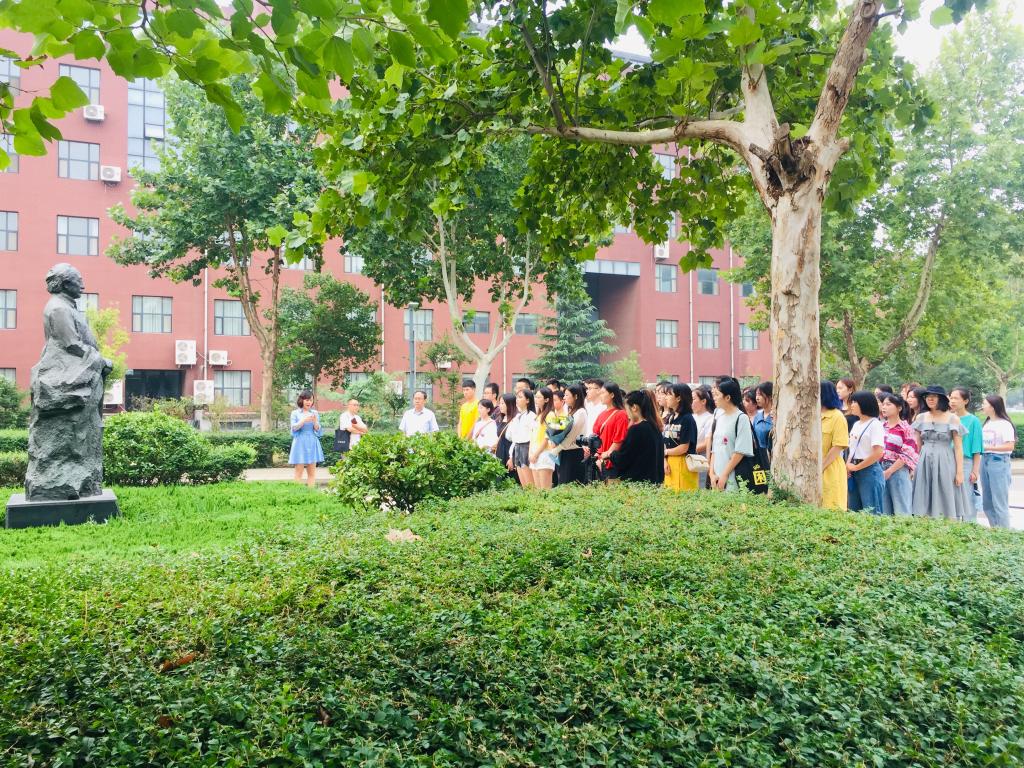9月10日上午,2019级的研究生们先后来到朱铭先生、孙长林先生和张仃先生的雕像前敬献鲜花。献花仪式按照人物简介、敬献鲜花、宣读献词、鞠躬致敬的步骤进行。王卫卫老师带领同学们分别在三位先生的雕像前宣读献词:“天工开物、匠心独运;不忘初心、牢记使命”。最后,董占军副院长鼓励同学们要好好学习,以饱满的热情和奋发昂扬的精神,热爱专业,钻研学术,在艺术设计和学术研究上努力深造。