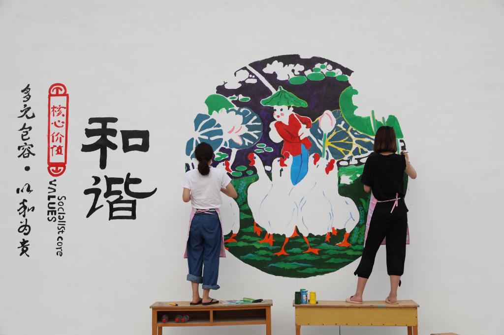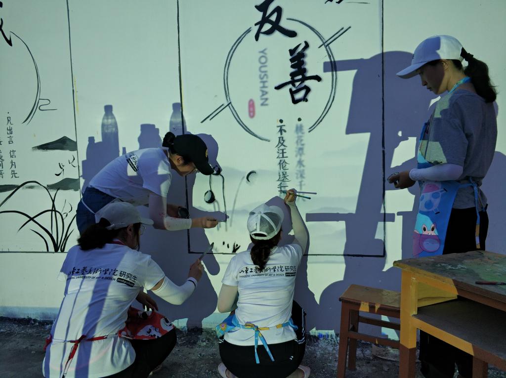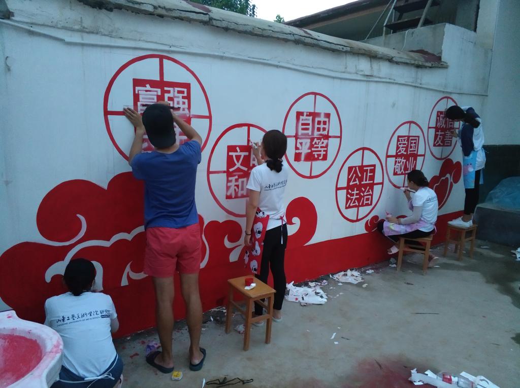 活动过程中,研究生们积极响应精准扶贫号召,发挥各自专长,结合当地特色,将社会主义核心价值观等多项内容融入艺术,完成了250多平方米墙面的设计和绘制。墙绘不仅美化了村容村貌,传递了社会主义核心价值观的正能量,更营造了脱贫攻坚的良好氛围,鼓舞了群众加快脱贫步伐、建设美丽乡村的信心。