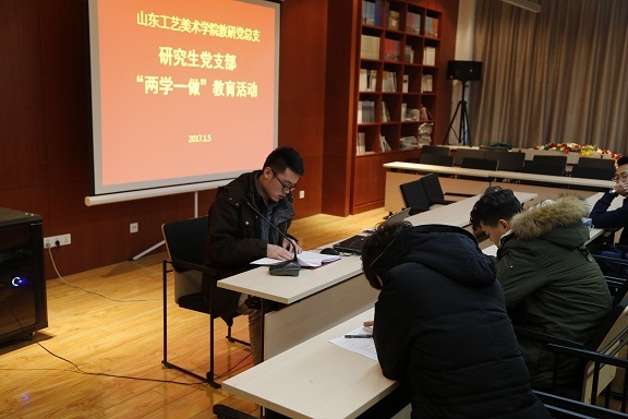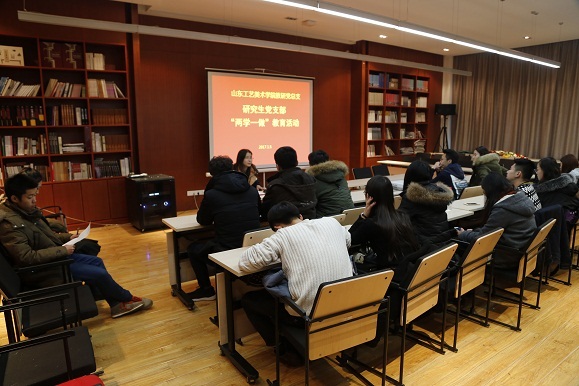 2017年1月5日下午,研究生党支部在长清校区研究生活动室开展了"两学一做"系列专题学习教育活动,会议由研究生第一党支部书记陈慧老师主持,全体研究生党员参加了此次会议。 本次会议内容有三项,首先支部书记陈慧老师总结了研究生党支部本学期"两学一做"系列活动的学习情况,并要求大家在即将到来的假期期间按照个人自学计划坚持学习。第二项为支部成员学习《关于学习贯彻落实全国高校思想政治工作会议精神的通知》,以全体党员逐一诵读的形式进行学习。第三项为组织支部党员观看爱国主义教育电影《湄公河行动》,片中公安人员不畏牺牲的爱国奉献精神使支部党员进一步增强了政治意识、大局意识、核心意识、看齐意识,提高了党性觉悟。 通过本次"两学一做"系列专题的学习,研究生党员们把优秀党员的思想、组织、作风、纪律更好的体现到实际学习、工作以及生活中,在党的思想上政治上行动上更加团结统一,严格要求自己,充分发挥党员应有的先锋模范带头作用。