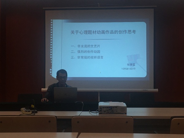 第四场(10月20日)以“待时而动”为主题,主讲人为2014级中国山水画研究生郭立杰、动画专业张荣富、书法专业李俊鹏、中国画花鸟画专业黄凤娇,分别从“近代中国画的概况及评论”、“关于类型动画中的心理指向动画的创作思考”、“米芾尺牍中的书仪”、“对当代女性画家工笔花鸟画创作的思考”四个方面,论述了中国传统艺术及当代热门艺术中的相关问题。