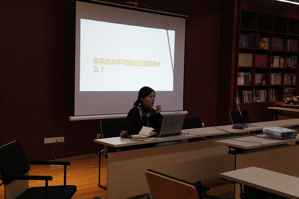 第五场(10月27日)以“老济南·新感情”为主题,主讲人分别为2014级设计学专业研究生柳盼丽、李娜、杨红敏、张娜,围绕“济南老街公共设施调查研究”、“情感诉求日用品设计”、“济南老店:门面担当”、“展览中的情感化设计”四个方面,讲述了产品设计及展示设计中的相关问题。