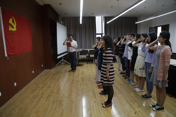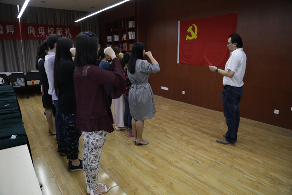 2016年6月8日下午,研究生党支部在我校长清校区研究生学术活动室举办了“为党旗增辉,向母校献礼”为主题的重温入党誓词活动。本次活动由党总支书记孙磊领誓,全体研究生毕业生党员参加了重温入党誓词活动。 在孙磊书记的引领下,全体研究生毕业生党员面对党旗举起右手,庄严宣誓,铮铮誓言表达了毕业生党员对党的事业的忠诚。本次活动进一步明确了党员责任,增强了党员的光荣使命感,相信毕业生党员在今后的工作中会更好的发挥党员的先锋模范作用,积极投身实践,为党的事业奋斗终身。