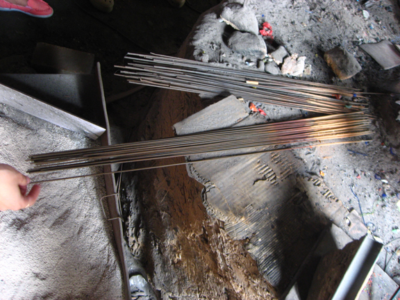8月14日,调研小组来到滨州市临池镇郑家村考察琉璃珠制作工艺。琉璃珠艺术历史悠久。作为代替玉珠等玉饰的装饰品,琉璃珠有着很高的观赏价值和使用价值。传统手工琉璃珠生产以杖子(长约1米的12-16号弹簧钢丝退火擀直而成)、模槽、叉子、搓板、搓石、铁钳等为主要工具,用圆炉烧制。其中,粒度最大和最小的各种珠及木红、玛瑙、凤眼、蘸花几种花色为细货,其他各种杂色料做的珠子属行货。