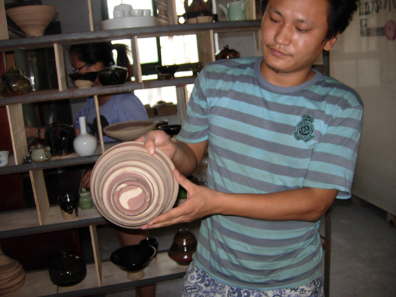 青年陶艺家展示工艺创新作品