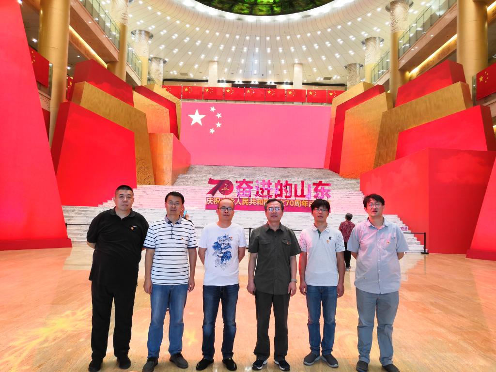 本次成就展以“奋进的山东”为主题,分为“百废俱兴 艰苦创业”“勇立潮头 砥砺前行”“走在前列 全面开创”三个部分,通过典型图片、实物资料、场景还原、动态演示、互动体验等方式,多角度、全景式集中展示了中华人民共和国成立70年来,山东经济社会发展取得的辉煌成就。观展过程中,大家不时停下脚步仔细观看、认真交流,深切感受我省在政治、经济、文化、生态文明和党的建设等方面取得的辉煌成就。大家还了解到我校参与主办此项展览的情况,对我校利用专业优势服务社会重大项目的能力有了更直观的认识,更加激发了大家作为美院一份子的自豪感和荣耀感。