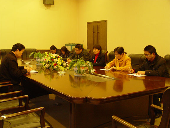 2009年3月11日下午,资产管理处新学期工作会议在千佛山校区二楼会议室召开。会议由副院长刁在祥主持,资产管理处全体同志参加了会议。 刁在祥副院长首先对郭春荣同志出任资产管理处处长表示热烈欢迎和祝贺。刁院长介绍,郭春荣同志长期从事高校财务管理工作,有着扎实的财务理论功底和丰富的管理经验。学校党委充分肯定郭春荣同志的工作,并决定由其担任资产管理处处长职务。同时,刁院长对郭处长提出了殷切期望,希望她在新的工作岗位上进一步加强学习,深入调查研究,尽快进入工作角色,虚心向老领导、老同志学习,取得更大的成绩。 郭春荣处长表示,能够加入资产管理处这个新的团队非常荣幸,感谢学校党委的信任和刁院长的肯定。在今后的工作中一定会与同志们真心沟通,尽心合作,全心投入,热心服务,踏实做事,扎实工作, 把资产管理处的优良传统传承下去并发扬光大。随后,郭处长对近期工作进行了具体部署。 最后,刁院长作总结讲话。资产管理处是一支年轻、有活力、充满希望的团队,希望在郭春荣处长的领导下,进一步提高工作水平,继续创建和谐、学习型处室,使各项工作再上新台阶。刁院长对资产管理处全体同志提出四点要求:服从领导,热情帮助,发扬传统,开拓创新。听了刁院长语重心长的指导,资产管理处全体同志倍受鼓舞,对今后的工作充满信心,纷纷表示,一定会服从领导,努力工作,树立良好形象,争创更好成绩。会议在快乐、和谐的气氛中结束。