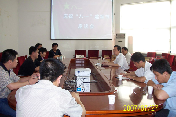 7月27日下午,我校千佛山校区第二会议室充满了欢声笑语。在这里,刁在祥副院长组织资产处、后勤处、保卫处的15名转业干部、复员军人举行庆祝“八一”建军节座谈会,热烈庆祝中国人民解放军建军80周年。座谈会围绕 “回眸军旅时光,数点光荣传统,振奋革命精神,推进学校工作”这个主题,在刁在祥副院长的主持下开始。