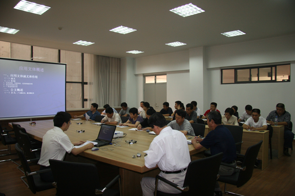 刘振良同志以应用文体写作为题,从办公用文、常用文书、新闻报道三个方面进行了讲解,系统介绍了各类文体的行文关系、适用范围、格式等,结合课件从结构简单、篇幅短小的通知、请示、报告、函、会议纪要等文体讲起,重点讲述了工作计划、工作总结和新闻报道的写作特点、规律、作用和要求。整个讲座通俗、直观,很受欢迎。