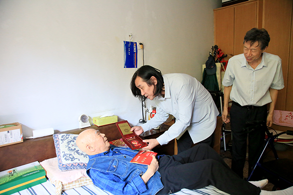 学校党委高度重视,对我校建国前参加工作的老同志走访慰问工作进行了部署。9月23日,党委副书记苗登宇走访慰问了我校7位离休老干部,向他们转发了党和国家颁发给他们的纪念章,代表学校送去慰问金、慰问品,感谢他们为祖国建设和学校发展做出的贡献。