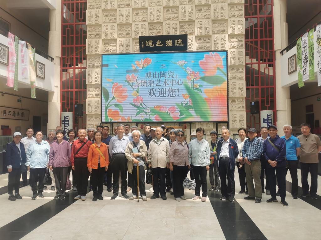 一行人首先参观了博山陶瓷琉璃艺术中心,博山区是著名的陶瓷名城、琉璃之乡,博山陶琉文化源远流长,陶瓷和琉璃分别有5000年和3000年以上的生产历史。艺术中心是一处集古今陶琉、名家书画等于一体的文化艺术博物馆,是国家4A级旅游景区、山东省社会科学普及教育基地、山东省教育厅行走齐鲁资源单位。走进中心,各个展馆内精美的艺术品令人大开眼界,而真实的工作场景以及制作体验,更加深了人们对陶瓷琉璃的了解。老同志们先后参观了人立琉璃艺术博物馆、艺术展览馆、陶瓷博物馆、人立陶琉体验馆、人立艺术酒店和陶瓷园,了解了中国陶瓷琉璃历史起源、发展脉络和艺术成就,感悟陶瓷琉璃艺术所蕴含的优秀传统文化及现代创新精神。