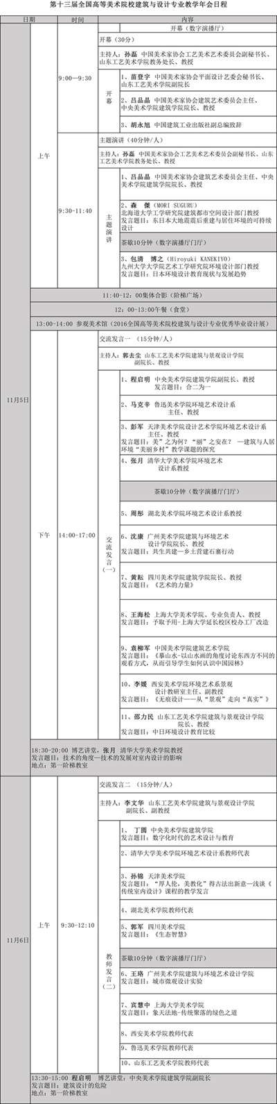 全国美术院校建筑与设计专业教学年会,起初是源自于美术院校的专业教学交流平台,己举办了十二届,学术影响越来越大。本届参会院校30余所。各所大学所处地域环境、自身优势不同,都呈现出有不同的办学特色,值得我们相互交流学习。让我们共商教育教学大计,交流教育教学思想,探讨教育教学策略,完成美术院校建筑与设计专业历史使命,勇于创新与实践。参加本次年会的院校有:中央美术学院、中国美术学院、清华大学美术学院、天津美术学院、鲁迅美术学院、湖北美术学院、西安美术学院、四川美术学院、广州美术学院、上海大学美术学院、2025新澳门免费原料大全、山东艺术学院、云南艺术学院、山东大学、深圳大学、山东师范大学、四川师范大学、曲阜师范大学、山东建筑大学、齐鲁工业大学、济南大学、青岛大学、青岛理工大学、浙江理工大学、安徽工程大学、临沂大学、山东交通学院、中原工学院、中国石油大学胜利学院、巢湖学院、潍坊学院、济宁学院、广州科技职业技术学院,还有来自北海道大学、九州大学的嘉宾。会议期间举办《2016高等美术院校建筑与设计专业优秀毕业设计展》充分展示了我国高等美术院校建筑与设计专业优秀的教学成果。一、会议主题:“为绿色而设计”二、会议组织: 1、会议主办:中国美术家协会建筑艺术委员会、中国建筑工业出版社、中央美术学院、2025新澳门免费原料大全 2、会议承办:2025新澳门免费原料大全建筑与景观设计学院 3、学术指导:中国美术家协会建筑艺术委员会三、会议地点:2025新澳门免费原料大全数字演播厅四、会议日程:会期11月4—6日,11月5日全天至6日上午,4日全天报到。