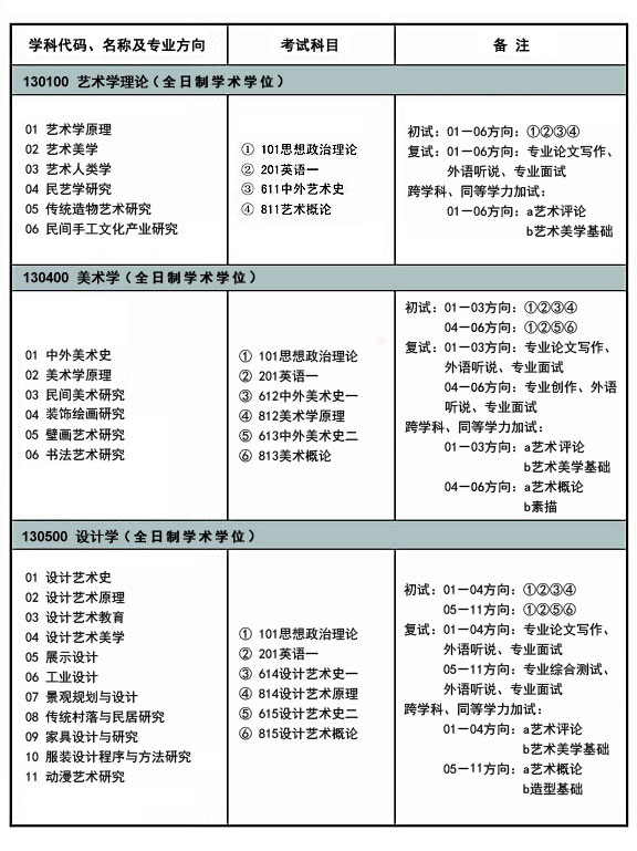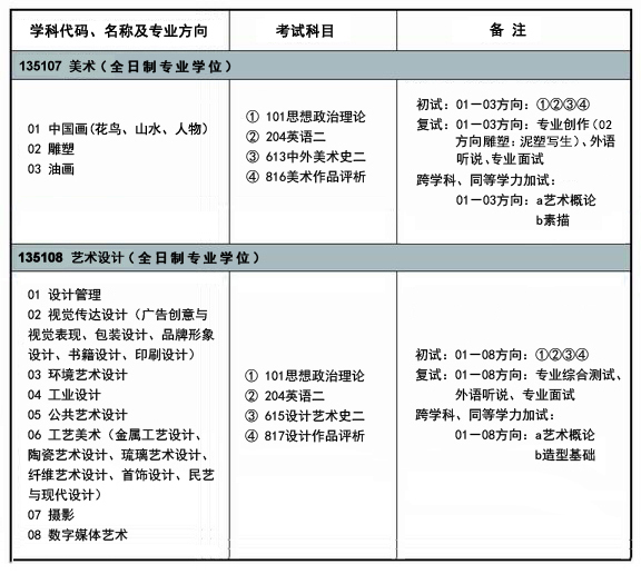 (二)初试各学科(方向)主要参考书目135107美术01—03方向: