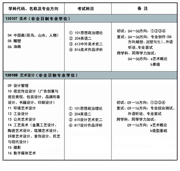 三、非全日制艺术硕士专业学位(MFA)研究生招生专业目录和初试参考书目