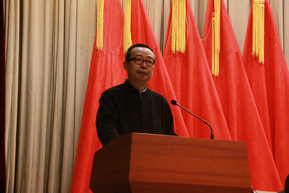 同志们,让我们脚踏实地,开拓创新,全面贯彻落实党的十八大、十八届三中全会、十八届四中全会精神, 认真学习落实习近平总书记系列讲话精神,积极培育和践行社会主义核心价值观,深入贯彻国家教育政策,坚持社会主义文艺方针,立德树人,依法治校,为把学校建设成为特色鲜明的高水平设计艺术大学而努力奋斗!