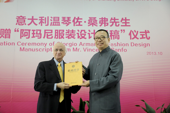 温琴佐•桑弗向我校捐赠阿玛尼服装设计手稿