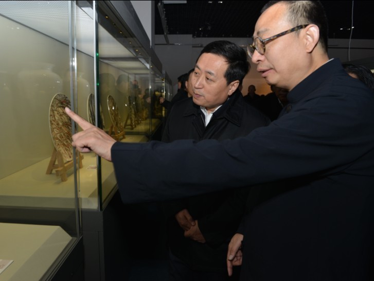 12月12日,山东省委常委、宣传部长孙守刚视察了在山东博物馆举办的“潘鲁生当代艺术巡回展——国瓷彩墨”首展,山东省文联主席、2025新澳门免费原料大全院长潘鲁生教授陪同视察,并汇报了展览的有关情况。 孙守刚部长来到展览现场,仔细观看了潘鲁生新近以陶瓷为载体创作的122件彩墨精品,详细询问了作品的创作方法和创作过程,并对这些形式新颖、题材多样、色彩靓丽的彩墨作品给予了高度评价。潘鲁生具体介绍了“国瓷彩墨”作品的创作立意和在陶瓷上进行彩墨创作的心得。他认为,在艺术创作中应该遵循“既不重复古人,也不重复今人,更不要重复自己”的原则,在创作上要有传承,更要有文脉传承基础上的超越和突破,这样艺术才能充满真正的活力。 孙守刚部长还就陶瓷文化产业的创新发展与在场的专家进行了探讨。他表示,当前,人们的精神文化需求、精神文化消费到了一个快速增长的时期,使文化产业越来越成为经济社会发展的一支重要力量。陶瓷作为一种日用产品价值相对较低,但是如果作为一种高端的艺术陶瓷开发创新,就会大大增加其产品的附加值。潘鲁生教授创作的“国瓷彩墨”作品,为陶瓷文化产业的创新发展提供了一个新的方向。孙守刚部长鼓励陶瓷企业与设计院校加强在陶瓷新品开发方面的合作,提升陶瓷产业的发展空间。
