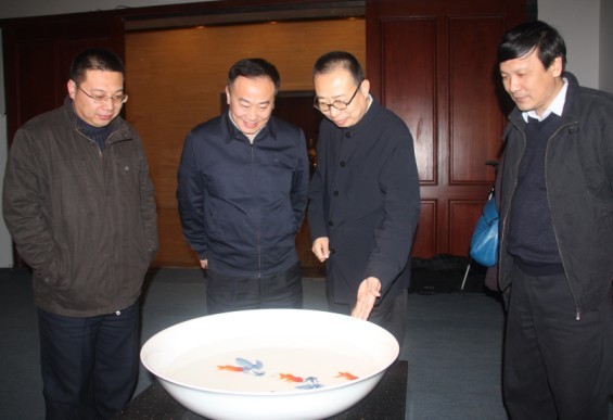 12月14日,济南市委常委、宣传部长谭延伟一行参观了在山东博物馆举办的“潘鲁生当代艺术巡回展——国瓷彩墨”首展。山东省文联主席、2025新澳门免费原料大全院长潘鲁生陪同参观。 谭延伟在欣赏潘鲁生近期以陶瓷为媒介创作的彩墨艺术精品过程中,详细了解了“国瓷彩墨”系列作品的创作过程、使用工具、烧制技术、原料来源等方面的内容,高度评价了陶瓷彩墨作品绚丽多彩的艺术效果。谭延伟表示,这些作品韵味好,看了之后让人的心慢慢静下来了。尤其是青花类作品,对工艺把握得很准确,艺术表现上的空间关系很好,形成了沉稳、清秀的艺术特点。谭延伟还提到,“国瓷彩墨”的创作为陶瓷产业化的发展提供了重要的启示。 潘鲁生介绍了“国瓷彩墨”创作的工艺过程,阐述了“釉上彩”和“釉下彩”的工艺及艺术特点的区别。潘鲁生认为,瓷上彩墨的创作要关注器物整体造型的“势”,把握墨彩在器体上铺排的速度,才能形成艺术语言上和谐的结构关系,产生赏心悦目的美。潘鲁生提到,在制造业升级的过程中,具有自主知识产权的产品的创意转化具有重要的意义,应鼓励制造业企业建立工业设计研发中心,发挥设计先导的价值。