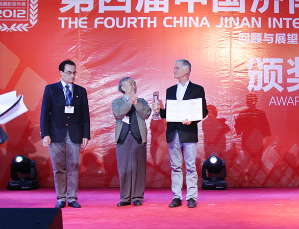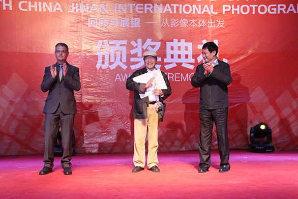 意大利著名风光摄影家克劳迪奥•卡洛斯和山东省委宣传部副部长高为朱宪民先生颁发墨子影像终身成就奖