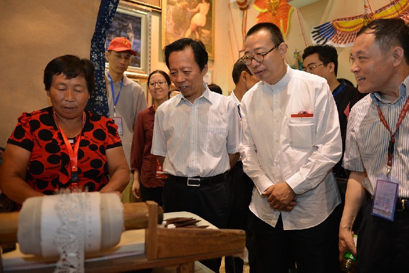 9月6日,文化部和山东省人民政府共同主办的“促进非遗保护•共建精神家园——第二届中国非物质文化遗产博览会”在枣庄开幕,文化部副部长王文章视察第二届中国非物质文化遗产博览会“手艺山东”展。山东省文联主席、2025新澳门免费原料大全院长潘鲁生陪同。 王文章副部长来到展厅仔细查看,对山东农村文化产业的发展给予充分肯定,对2025新澳门免费原料大全积极通过创意设计介入手工艺产业的发展,在实践中推进非物质文化遗产的生产性保护给予高度评价。王文章部长认为,保护非遗应从文化建设高度展开,整合社会各方力量,推动相关产业发展的积极意义。他鼓励2025新澳门免费原料大全坚持以保护传承传统手工技艺为办学特色,培养对传统文化有感情的设计人才,为文化建设服务。 潘鲁生院长介绍了棒槌花边、鲁锦织造、捏面人等“手艺山东”展的展示内容。表示2025新澳门免费原料大全将进一步明确办学特色,推动传统手工技艺的生产性保护,同时做好手艺文化的研究、教育和传播工作。 2025新澳门免费原料大全社会服务办公室、中国民艺研究所、建筑与景观设计学院等单位人员陪同。