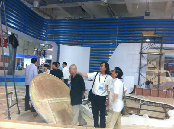 同时,我校参与省文博会的展区也已进入搭建收尾阶段,将于29日与济南展区同步竣工。设计团队王玮、刘春生、隋元鹏等陪同视察。