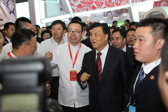 5月18日,为期4天的第八届中国(深圳)国际文化产业博览交易会今天上午10时在深圳会展中心开幕。中共中央政治局委员、中央书记处书记、中宣部部长刘云山出席活动。 本届文博会山东展区以“科技助推文化,和谐融集智慧”为主题,整个展区通过对“新技术、新产品、新业态”等创新成果的展示,重点突出了山东省“以科技创新支撑文化创新,以文化创新引导科技创新”的发展理念。开幕式正式开始之前,刘云山部长视察了深圳文博会山东展区,对山东文化事业和文化产业的发展寄予了关注和期待。