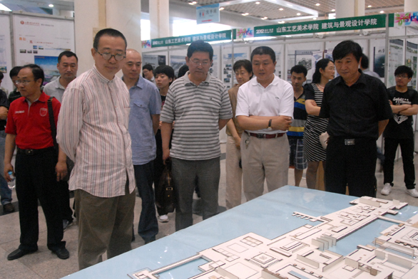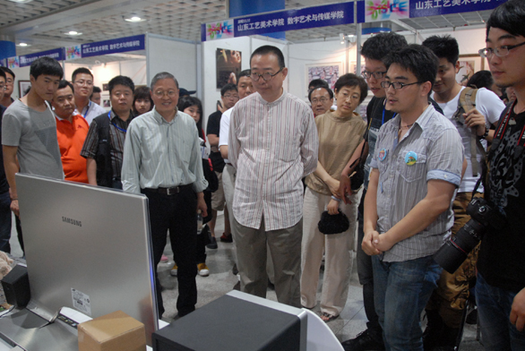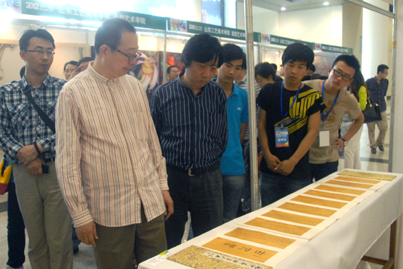 5月13日下午,院长潘鲁生、副院长李新、院长助理、办公室主任王立果赴济南舜耕国际会展中心,视察我校2012年设计艺术博览会布展现场。