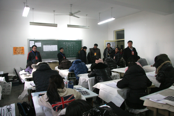 校领导仔细巡视各个考场,了解考试要求与内容,查阅考生试卷,并详细询问监考人员考试情况,指导考试工作。视察过程中,学校领导对分院考点井然有序的现场表示满意,要求监考人员坚持“考生为本”的原则,本着对考生负责的态度,严肃考场纪律,规范考试程序,确保公平、公正的考试现场。