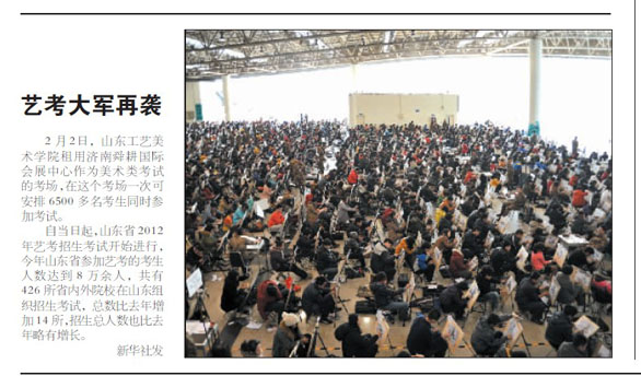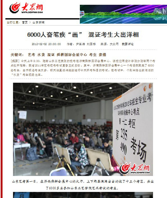 人民日报、新京报、北京晨报、大众日报、齐鲁晚报、济南日报、山东广播电视台、济南广播电视台、山东教育电视台、新华网、中新网、大众网、新浪网、腾讯网等媒体对我校招生专业考试进行了报道。