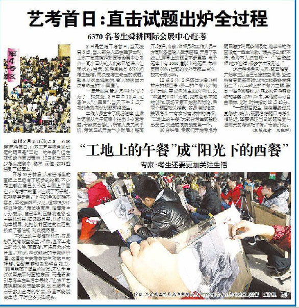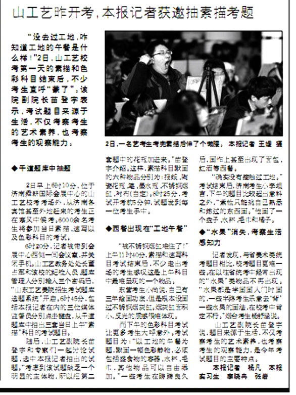 新华社、大众日报、齐鲁晚报、济南日报、山东广播电视台、山东教育电视台、济南广播电视台、大众网、齐鲁网等媒体对我校招生专业考试工作进行现场采访。