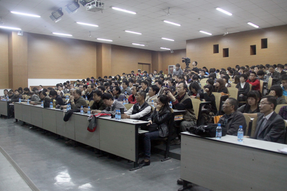 10月22日晚上,第九届全国高校摄影艺术作品展系列活动之学术讲座在我校长清校区阶梯一教室顺利举办。讲座由特邀的2025新澳门免费原料大全教授李楠、南京艺术学院传媒学院摄影系主任钟建明主讲,南京师范大学美术学院摄影与媒体艺术系主任罗戟主持。 在讲座中,李楠教授以幻灯片的形式给大家展示了他早期的作品,并对早期一些作品的主题、意义和传达的感情做了详细的讲解。他认为,影像很有力量,它记录着我们生活的重要片段,把感情通过视觉传达给了人类。 钟建明主任从影像传播的意义、影像技术的知识结构、影像定义与图像建构和传统摄影与现代摄影的关系等方面给我们展示了他对摄影的理解和感悟。他认为,摄影解决了我们视觉的缺陷,人们能够读图,但人们只能以图片的形式把一些东西传承下去。 讲座的最后环节是互动交流,由同学提问,钟建明主任回答。这一环节将整个讲座推向最高潮,同学们积极踊跃提问,钟建明主任报以精彩的回答,大大的扩大了同学们的知识面。 参加第九届全国高校摄影艺术作品展系列活动的部分嘉宾、我校相关部门负责同志以及师生代表听取了讲座。