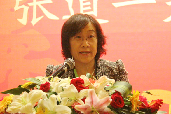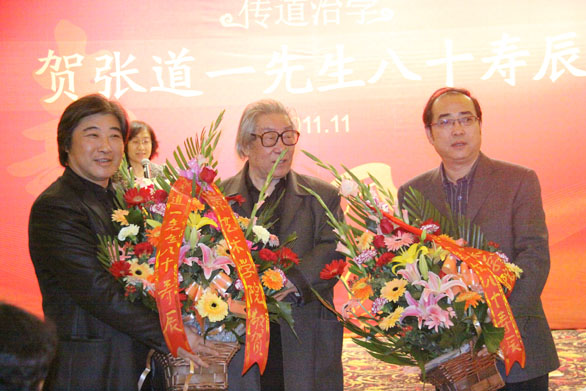 清华大学美术学院副院长何洁、南京艺术学院副院长何晓佑向张道一先生赠送寿礼