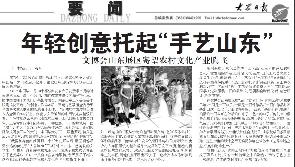 >> 新华网:文博会上演“手工农村,创意齐鲁”时装秀