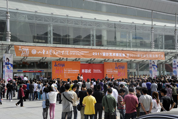5月1日上午,我校2011设计艺术博览会暨2011届毕业生就业推介会在济南舜耕国际会展中心隆重开幕。济南市西区投融资管理中心主任王迪生,新华社传媒中心主任赵鹏,省教育厅学生处处长司金贵,省经信委科技处副处长王岩,鲁商集团副总经理徐丽萍,山东大学艺术学院副院长李萍,山东美术出版社社长刘传喜,山东省电影学校党委书记、校长安立元出席开幕式。我校出席开幕式的领导有党委书记于茂阳,党委副书记杨新力,党委副书记、纪委书记裴新锋,副院长李新、刁在祥、张云龙、苗登宇,院长助理、办公室主任王立果。 我校毕业生代表宣读宣言书;出席开幕式的领导嘉宾签名祝福;党委书记于茂阳宣布我校2011设计艺术博览会暨2011届毕业生就业推介会开幕。 本届设计艺术博览会延续了 “设计•生活”的主题,参展作品集时尚性、观赏性、实用性于一身,在新材料、新工艺、新技术的运用上有了更大进步,形式新颖,工艺精湛,贴近生活,将以匠心独具的创意和异彩纷呈的设计为泉城观众奉献一场视觉盛宴。它既是对我校毕业生学习成果和设计、创意能力的集中展示,也是我校近年来“加强实践教学建设,培养创新型应用设计艺术人才”教育成果集中体现。 此次展出的作品包括我校视觉传达设计学院、建筑与景观设计学院、工业设计学院、服装学院、造型艺术学院、现代手工艺术学院、数字艺术与传媒学院、人文艺术学院、应用设计学院9个教学单位的本专科毕业生作品,另外还包括研究生作品,以及体现我校社会服务能力和成就的作品。这些作品内容从广告、装潢设计,到产品造型、家具、室内、环境艺术、建筑艺术、展示空间设计;从传统陶瓷、漆艺、金工、首饰,到现代数字艺术、动画、影视美术、摄影;从企业整体形象设计,到体现时尚和生活的服装设计等等,均与衣、食、住、行等生活方式紧密联系。其中既有前沿的概念设计,也有使用设计,基本涵盖了设计艺术的各个方面。此外,还有绘画、雕塑等美术作品。 展览期间,影视动画展映和服装表演与妆扮艺术展示将分别在鲁信影城体育中心店和银座索菲特大饭店6楼多功能厅举行。 我校各二级学院及职能部门负责同志、相关人员、师生代表一同与社会各界艺术爱好者参加了开幕式。