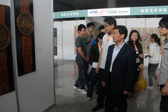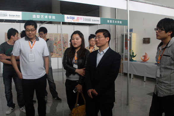 4月30日下午,副院长李新、张云龙、苗登宇赴济南舜耕国际会展中心,视察我校2011年设计艺术博览会布展现场。 校领导逐一视察了各个展区,充分肯定了展览布置的总体效果,对开幕式流程、各单位的展位设计和展品安排提出指导意见。各二级学院负责人向校领导介绍了毕业生毕业创作及布展情况。 校领导指出,设计艺术博览会是学校教学成果最重要的展示,学校历年来对此高度重视。各相关部门、单位要做好展览的每一个细节,充分展示我校的专业特色、教学成果以及学生的学习成果,为学生就业创业提供良好的平台,力争使设计艺术博览会达到最佳的展示效果。视察期间,校领导和有关单位、部门负责人对优秀作品进行现场评定。 教务处、研究生处等部门和各二级学院负责人陪同。