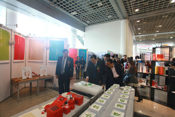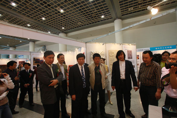 5月1日上午,我校2011年设计艺术博览会暨毕业生推介会在济南舜耕国际会展中心隆重开幕,开幕式结束后,党委书记于茂阳与济南市西区投融资管理中心主任王迪生,新华社传媒中心主任赵鹏,省教育厅学生处处长司金贵,省经信委科技处副处长王岩,鲁商集团副总经理徐丽萍,山东大学艺术学院副院长李平,山东美术出版社社长刘传喜,山东省电影学校党委书记、校长安立元,以及我校领导党委副书记杨新力,党委副书记、纪委书记裴新锋,副院长李新、刁在祥、张云龙、苗登宇,院长助理、办公室主任王立果参观视察展览。 在舜耕国际会展中心展出的是我校2011届本专科毕业生以及研究生的毕业创作作品以及体现我校社会服务能力和成就的作品。参展作品体现了我校毕业生数年学习、思考、探索和实践的成果,也凝聚了指导老师们的心血,作品风格多样、精彩纷呈,充分展现了我校良好的教学成果。各二级学院及相关部门也积极筹备,统筹安排,设计了新颖别致的展台和展板,以最佳的效果衬托出做工精美、创意独特的设计和艺术作品。 与会领导仔细观赏了展览,不时在精美作品前驻足欣赏,我校领导向来宾介绍了我校实践教学体系的特色和师生们以设计作品服务社会的成绩。来宾对我校的教学成果和人才培养成果表示赞赏,对展出作品给予高度评价。