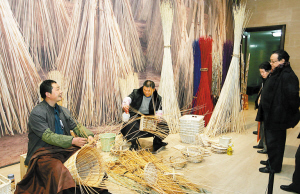 造型精美的草柳编织、桐杨木作,设计新颖的风筝、土布产品,洋溢着时尚气息的农民工笔画、年画等,尤其手工艺人的现场制作,都吸引了大批参观者驻足观赏。