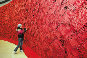 迎面一面长40多米、宽4米的精美中国结“墙”,红红火火拉开了2011年中国美术馆开年大展的帷幕。