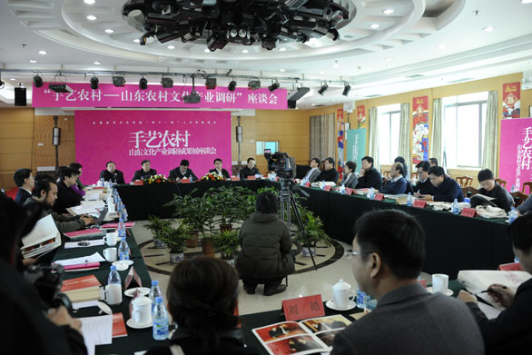 2月23日上午,由省委宣传部组织召开的“手艺农村——山东农村文化产业调研”座谈会在济南举行,学习中共中央政治局委员、中央书记处书记、中宣部部长刘云山,中共山东省委书记姜异康关于“手艺农村——山东农村文化产业调研”项目及展览的重要批示,总结“手艺农村——山东农村文化产业调研成果展”办展经验,研究推动我省农村手艺传承创新与农村文化产业发展的思路举措。座谈会由山东省委宣传部副巡视员聂宏刚主持。 出席座谈会的领导有:山东省委宣传部副部长,山东省委宣传部副巡视员聂宏刚,山东省社会科学界联合会党组书记、副主席刘德龙,山东省文联主席、我校院长潘鲁生,全国宣传文化系统“四个一批”出版界人才、中国孔子基金会理事长兼秘书长梁国典,大众报业集团副总编辑郝克远,山东省文化厅副厅长李国琳,山东省文联副巡视员顾亚龙,山东省轻工集体企业联社主任、党组书记钟苏华,我校副院长李新,我校院长助理、办公室主任王立果等。 出席座谈会的专家有:山东大学历史文化学院院长、山东省文化产业研究基地首席专家、教授王育济,山东省经济和信息化委员会科技处处长孟繁华,山东省农业厅产业化办公室副调研员董英,山东社会科学院文化产业中心主任、研究员王志东,山东经济学院财税金融研究所所长、教授陈华,山东新华书店集团有限公司常务副总经理巩兰芳,全国宣传文化系统“四个一批”出版界人才、济南日报报业集团副总编辑、舜网传媒有限公司总经理李光明,全国宣传文化系统“四个一批”经营管理人才、山东电视台台长助理、北京鲁视领航传媒有限公司总经理高立民,山东省艺术馆馆长、山东省非物质文化遗产保护中心主任王寿宴,山东省民间文艺家协会常务副主席王映雪,山东工艺美术研究所副所长、山东省工艺美术协会会长梁兆明,山东省作家协会副主席、山东师范大学文学院教授李掖平,山东省民俗学会副会长、秘书长、山东大学文史哲研究院民俗学研究所所长、教授张士闪,我校教务处处长、教授董占军,我校研究生处处长、教授唐家路,我校人文艺术学院院长、民艺研究所所长、教授赵屹,我校网络信息管理中心主任顾群业,我校科研处副处长、教授孙磊等。这些专家来自省宣传文化系统、社科理论界、文化产业界、农村问题研究领域、经济学研究领域以及工艺美术和艺术设计领域。 山东省委宣传部副巡视员聂宏刚传达了中央、省委领导的重要批示精神,并带领大家进行了学习。 山东省文联主席、我校院长潘鲁生向出席座谈会的领导和专家介绍了山东农村文化产业调研和展览情况。谈了学习中央和省委领导批示的体会:一、研究和发展农村文化产业,要做到“从实际出发”,“因地制宜”,“适应时代需求”;二、在农村文化产业发展和调研取得积极成果的基础上,进一步扎扎实实开展工作;三、进一步着眼全局,实现农村文化产业发展的综合意义;四、深入贯彻科学发展观,研究和推动农村文化产业发展。潘鲁生院长还提出了以下几点建议:一、成立“农村文化研发中心”;二,加强高校“手工艺”专业建设;三,进一步研究制定“农村文化产业发展规划”;四,成立“农村手艺产业合作社”等农村基层组织。 参会领导和专家从不同角度对此项目发表了各自的意见和建议。一致认为潘鲁生院长主持的山东农村文化产业调研题目,立足非遗保护与手艺产业的发展实际,深入开展田野调研,全面地进行分析论证,深入地阐释了农村手艺产业的发展问题,探讨了手工艺与设计艺术的有效对接,为推动传统文化资源的生产性保护传承,促进设计产业的实践应用作出了积极的探索和尝试,必将对山东农村文化的保护、继承与发扬,以及山东农村文化产业发展起到积极地推动作用。对于探索解放和发展农村文化生产力,促进农村经济社会发展,帮助农民增收致富;对于探讨推动民间手工艺可持续传承发展,进一步焕发生机和活力;对于研究强化非物质文化遗产的生产性保护机制,促进文化创意产业发展,具有重要意义。 山东省委宣传部副部长作重要讲话。副部长对山东农村文化产业调研和展览进行了充分肯定和高度评价,指出,展览对于山东下一步如何发展农村文化产业,如何帮助农民增收,如何富民做出了有益的探索。调研和展览工作符合科学发展观精神;符合推动社会主义文化大发展大繁荣精神;挖掘了农村文化产业的潜力和市场空间;关注了农村,关注了农民,具有极其重要的意义。副部长谈了以下体会:一、要认真学习、深刻领会中央及省委领导的批示精神;二、大力发展文化产业,山东具备了良好条件;三、要集思广益,以农村手工艺保护和开发为着力点,加快农村文化产业发展。副部长提出了以下建议:一、建议以潘鲁生院长为首的团队继续搞好调研工作;二、加强规划引导,探索适合的发展模式和载体;三、利用好现有和潜在的资源,开拓好国内和国际市场;四、发展农村文化产业要增加科技含量,加强人的培养;五、搞好组织协调,加大政策扶持。 据悉,2011年1月9日至18日,全国宣传文化系统“四个一批”人才资助项目,潘鲁生主持的“手艺农村——山东农村文化产业调研成果展”在中国美术馆成功举行。刘云山部长做重要批示,指出 “手艺农村,文化富民。”“发掘发展传统手艺是从实际出发开拓农村文