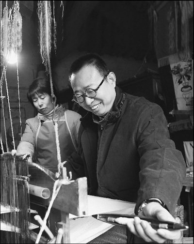 2010年11月,潘鲁生在山东菏泽鄄城调研土布制作工艺。 李 楠摄