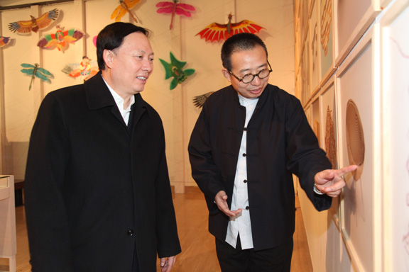 陪同,汇报山东农村文化产业调研及展览情况,对农村文化产业发展和学术研究情况进行了介绍。