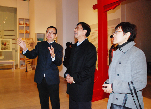 陪同,汇报山东农村文化产业调研及展览情况,就传统文化保护与传承等问题进行交流。