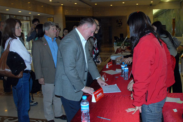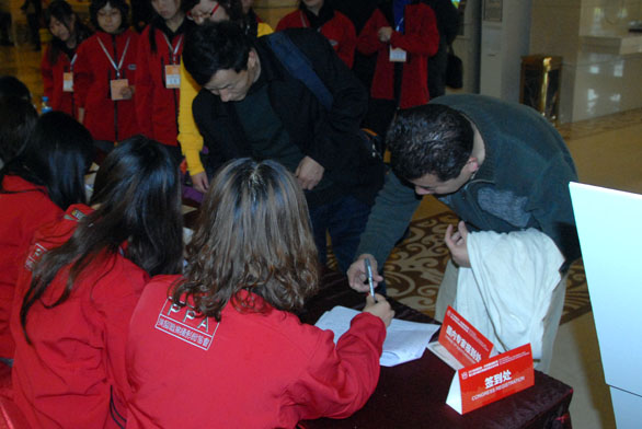 “2010影像亚洲•齐鲁国际摄影周暨第三届济南国际摄影双年展”将于11月5日至8日在济南举行。4日,参加大展的国内外摄影家陆续抵达济南舜耕国际会展中心,在我校工作人员和志愿者的协助下完成注册报到。 截至发稿时,参加“2010影像亚洲•齐鲁国际摄影周暨第三届济南国际摄影双年展”的国外嘉宾65人、国内嘉宾84人已基本注册完毕。我校工作人员和志愿者热情细致的服务得到与会嘉宾的一致好评。