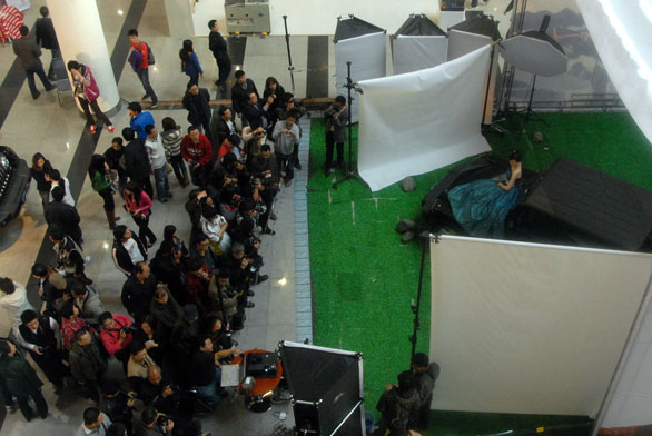 11月6日下午,由我校参与主办的“2010影像亚洲•齐鲁国际摄影周暨第三届济南国际摄影双年展”系列活动之——中美商业摄影大师越野车棚拍现场指导活动在济南舜耕国际会展中心举行,广大摄影爱好者参加活动。 国内著名商业摄影师李楚益女士从越野车棚拍现场环境、拍摄技巧、摄影师与模特互动等方面,向广大摄影爱好者讲解了越野车模特棚拍的知识和技术,并针对摄影爱好者提出的问题进行了现场解答。 指导活动开始前,广大摄影爱好者围绕越野车进行了一系列拍摄活动。