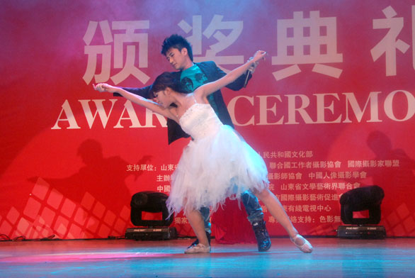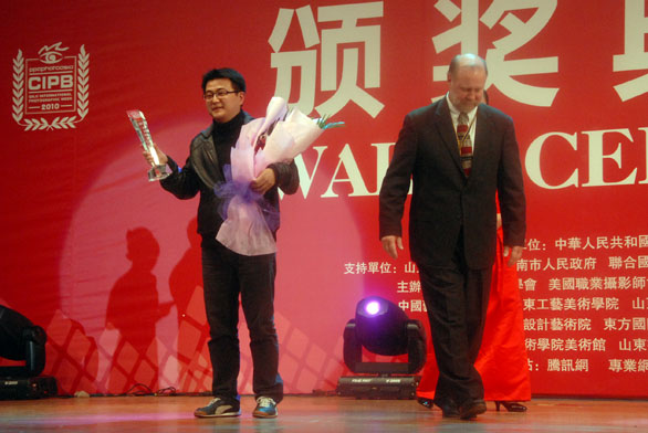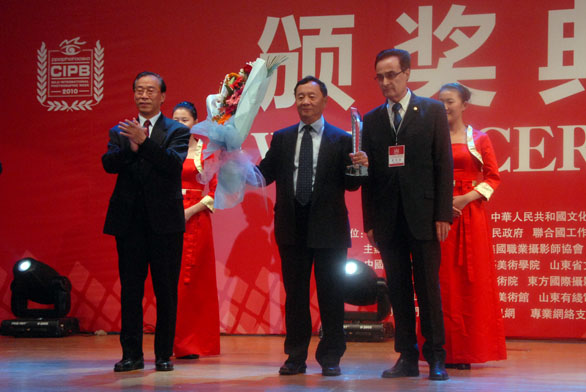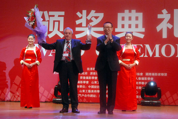 荣获“齐鲁国际摄影奖”的摄影家登台领奖