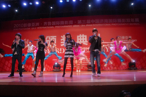 11月6日晚,由我校参与主办的“齐鲁之夜——2010影像亚洲•齐鲁国际摄影周暨第三届济南国际摄影双年展颁奖典礼”在济南舜耕会堂报告厅举行。院长潘鲁生出席颁奖典礼并为获奖者颁奖。 “2010影像亚洲•齐鲁国际摄影周暨第三届济南国际摄影双年展”八大展览的评选异彩纷呈,共收到来自全球的三万六千余幅作品。颁奖典礼上,大会十二个奖项逐一揭晓。原山东省副省长、齐鲁摄影学会名誉主席黄可华,国际摄影艺术联合会副主席乔•伯吉斯•马提塞拉为中国艺术摄影学会主席杨元惺颁发“国际摄影特别荣誉奖”。山东省文联主席、我校院长潘鲁生为意大利摄影家希尔瓦诺•蒙奇颁发“墨子国际摄影大师奖”。 此外,中国摄影家陈长芬荣获“国际摄影终身成就奖”;中国摄影家邓伟、李丽娜、汤德胜荣获“国际摄影杰出贡献奖”;中国摄影家傅欣荣获“PPA国际职业摄影大师奖”;中国摄影家陈云晓荣获“影像亚洲国际摄影大奖”。荣获“最佳摄影奖”、“齐鲁杰出摄影师奖”、“齐鲁国际摄影奖”、“铜小孔奖”、“银小孔奖”、“金小孔奖”等奖项的国内外摄影家代表也先后登台领奖。 除了颁奖环节外,主办方还特意安排了由我省一批青年演员带来的精彩的文艺节目。根据黄可华先生一组摄影作品灵感设计,由我校服装表演专业学生演绎时装走秀赢得现场嘉宾的阵阵掌声。典礼在和谐欢快的气氛中结束。